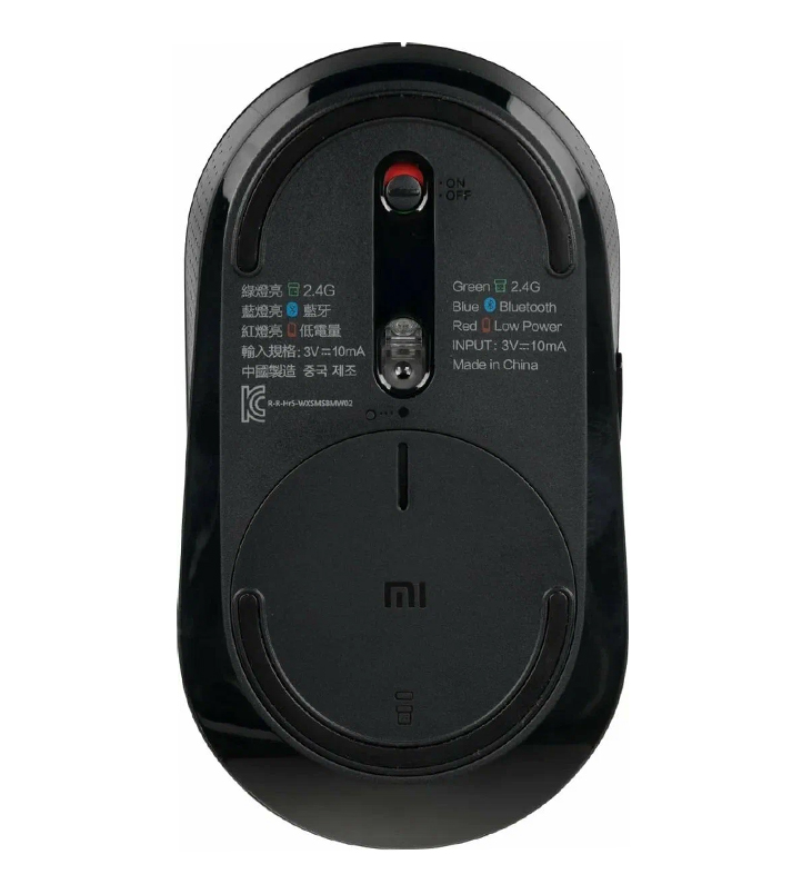 Мышь подключается к компьютеру как по Bluetooth, так и с помощью USB-приемника 2,4 ГГц, расположенного на нижней крышке. Низкое электропотребление требует только пары батареек ААА примерно на год работы.
